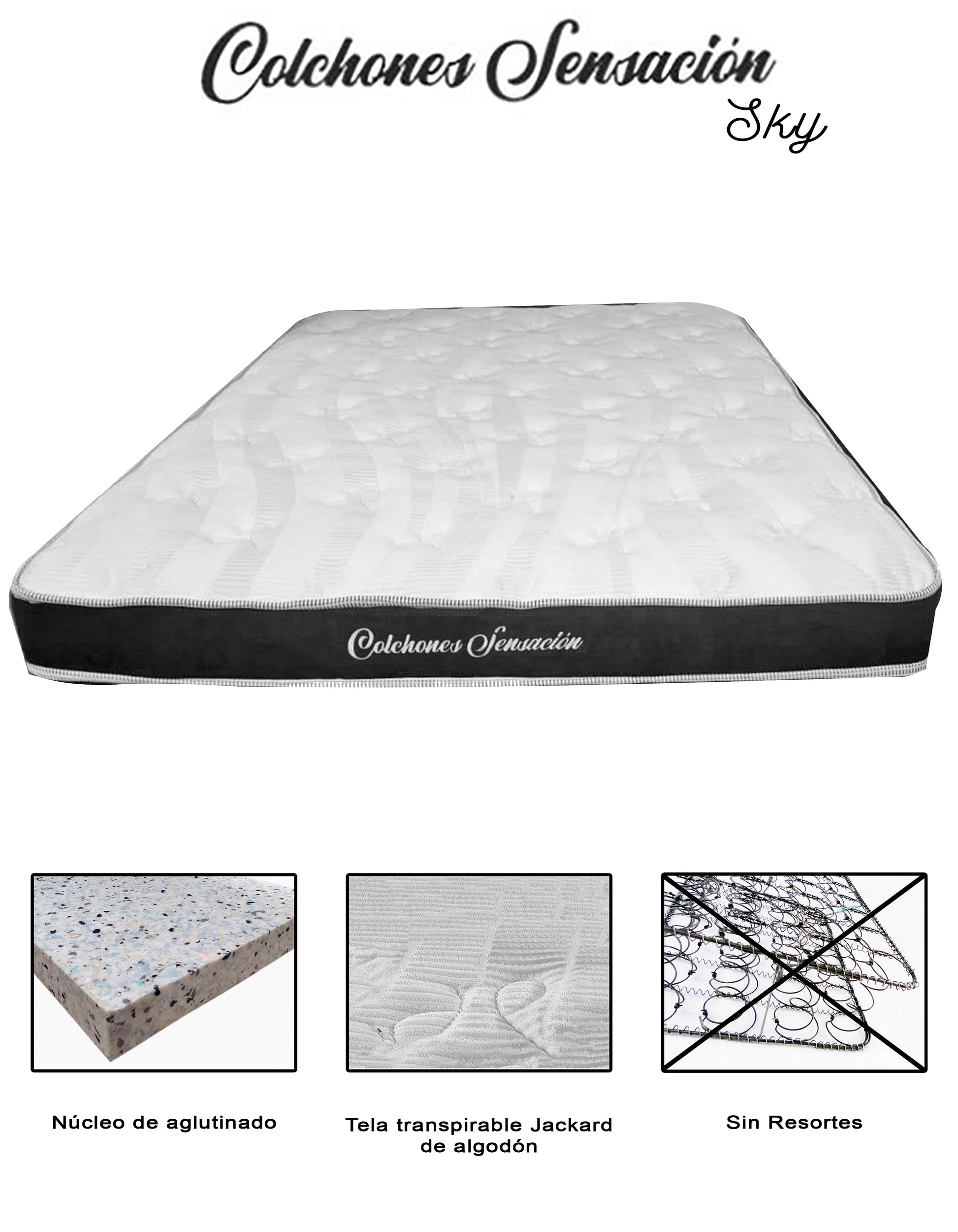 Colchón Sin resortes de Hule espuma, Hotelero Económico Sensación Mod. Sky
